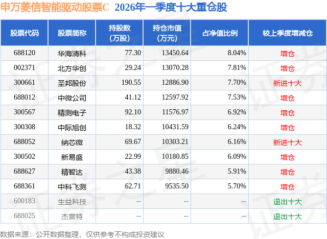 证券之星消息,日前申万菱信智能驱动股票C基金公布一季报,2026年一季度最新规模12.82亿元,季度净值涨幅为5.38%。