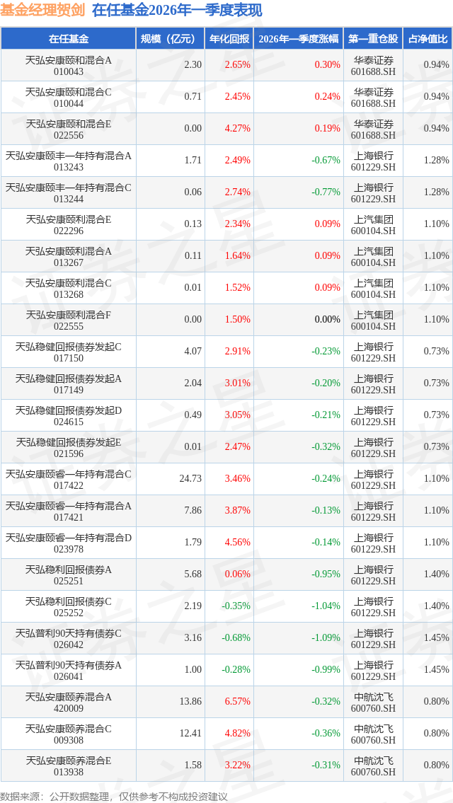 证券之星消息,日前天弘安康颐利混合A基金公布一季报,2026年一季度最新规模0.11亿元,季度净值涨幅为0.09%。