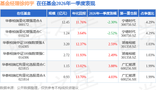 证券之星消息,日前华泰柏瑞中证500指数增强A基金公布一季报,2026年一季度最新规模3.2亿元,季度净值涨幅为2.59%。