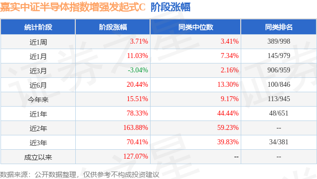 从业绩表现来看,嘉实中证半导体指数增强发起式C基金过去一年净值涨幅为78.33%,在同类基金中排名48/651,同类基金过去一年净值涨幅中位数为44.44%。而基金过去一年的最大回撤为-17.8%,成立以来的最大回撤为-46.34%。