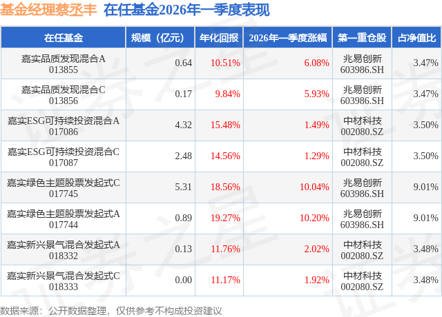 证券之星消息,日前嘉实品质发现混合C基金公布一季报,2026年一季度最新规模0.17亿元,季度净值涨幅为5.93%。