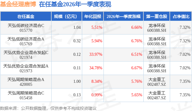 证券之星消息,日前天弘周期策略混合C基金公布一季报,2026年一季度最新规模0.13亿元,季度净值涨幅为5.65%。