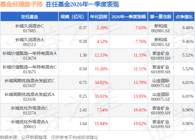 证券之星消息,日前长城周期优选混合发起式A基金公布一季报,2026年一季度最新规模0.25亿元,季度净值涨幅为13.95%。