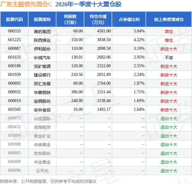 证券之星消息,日前广发主题领先混合C基金公布一季报,2026年一季度最新规模2.43亿元,季度净值涨幅为5.57%。