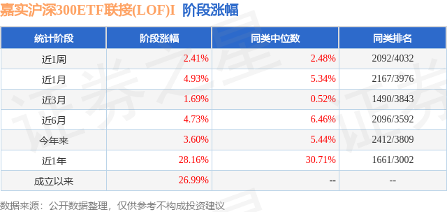 从业绩表现来看,嘉实沪深300ETF联接(LOF)I基金过去一年净值涨幅为28.16%,在同类基金中排名1661/3002,同类基金过去一年净值涨幅中位数为30.71%。而基金过去一年的最大回撤为-7.33%,成立以来的最大回撤为-16.85%。