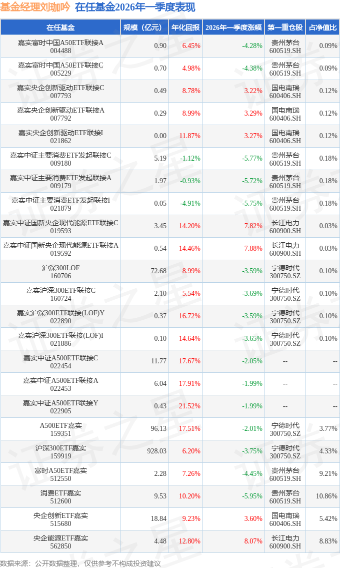 证券之星消息,日前嘉实沪深300ETF联接(LOF)I基金公布一季报,2026年一季度最新规模0.1亿元,季度净值涨幅为-3.65%。