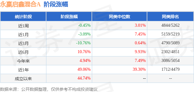 从业绩表现来看,永赢启鑫混合A基金过去一年净值涨幅为49.06%,在同类基金中排名1712/4479,同类基金过去一年净值涨幅中位数为39.3%。而基金过去一年的最大回撤为-15.8%,成立以来的最大回撤为-16.47%。