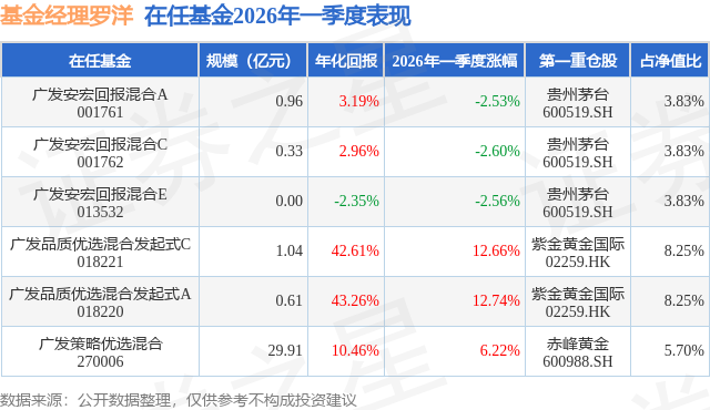 广发品质优选混合发起式A现任基金经理为罗洋。其中在任基金经理罗洋已从业6年又338天,2024年6月27日正式接手管理广发品质优选混合发起式A,任职期间累计回报为92.32%。目前还管理着6只基金产品(包括A类和C类),其中本季度表现最佳的基金为广发品质优选混合发起式A(018220),季度净值涨幅为12.74%。