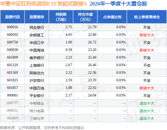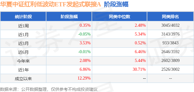 证券之星消息,日前华夏中证红利低波动ETF发起式联接A基金公布一季报,2026年一季度最新规模4.68亿元,季度净值涨幅为2.24%。