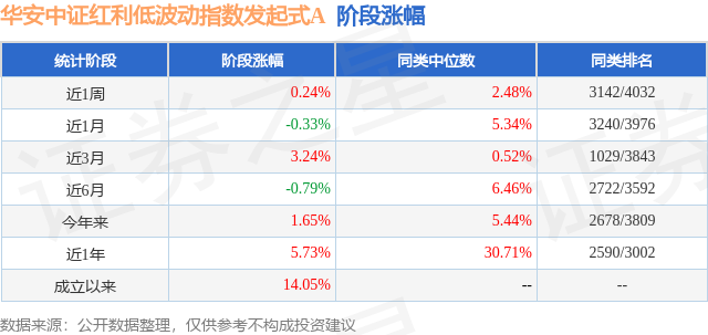证券之星消息,日前华安中证红利低波动指数发起式A基金公布一季报,2026年一季度最新规模0.3亿元,季度净值涨幅为2.01%。