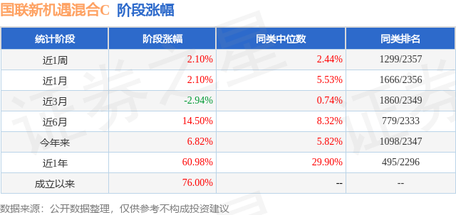 从业绩表现来看,国联新机遇混合C基金过去一年净值涨幅为60.98%,在同类基金中排名495/2296,同类基金过去一年净值涨幅中位数为29.9%。而基金过去一年的最大回撤为-11.78%,成立以来的最大回撤为-13.33%。