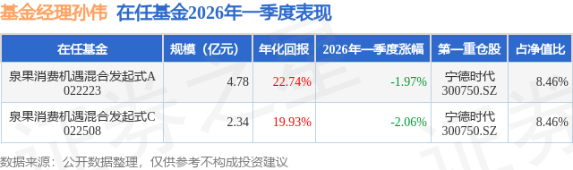 证券之星消息,日前泉果消费机遇混合发起式A基金公布一季报,2026年一季度最新规模4.78亿元,季度净值涨幅为-1.97%。
