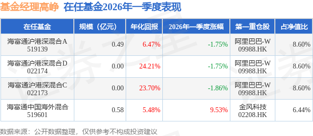 证券之星消息,日前海富通沪港深混合C基金公布一季报,2026年一季度最新规模0.0亿元,季度净值涨幅为-1.86%。