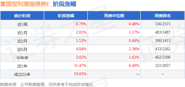 从业绩表现来看,富国宝利增强债券E基金过去一年净值涨幅为11.47%,在同类基金中排名321/2057,同类基金过去一年净值涨幅中位数为6.4%。而基金过去一年的最大回撤为-1.57%,成立以来的最大回撤为-4.62%。