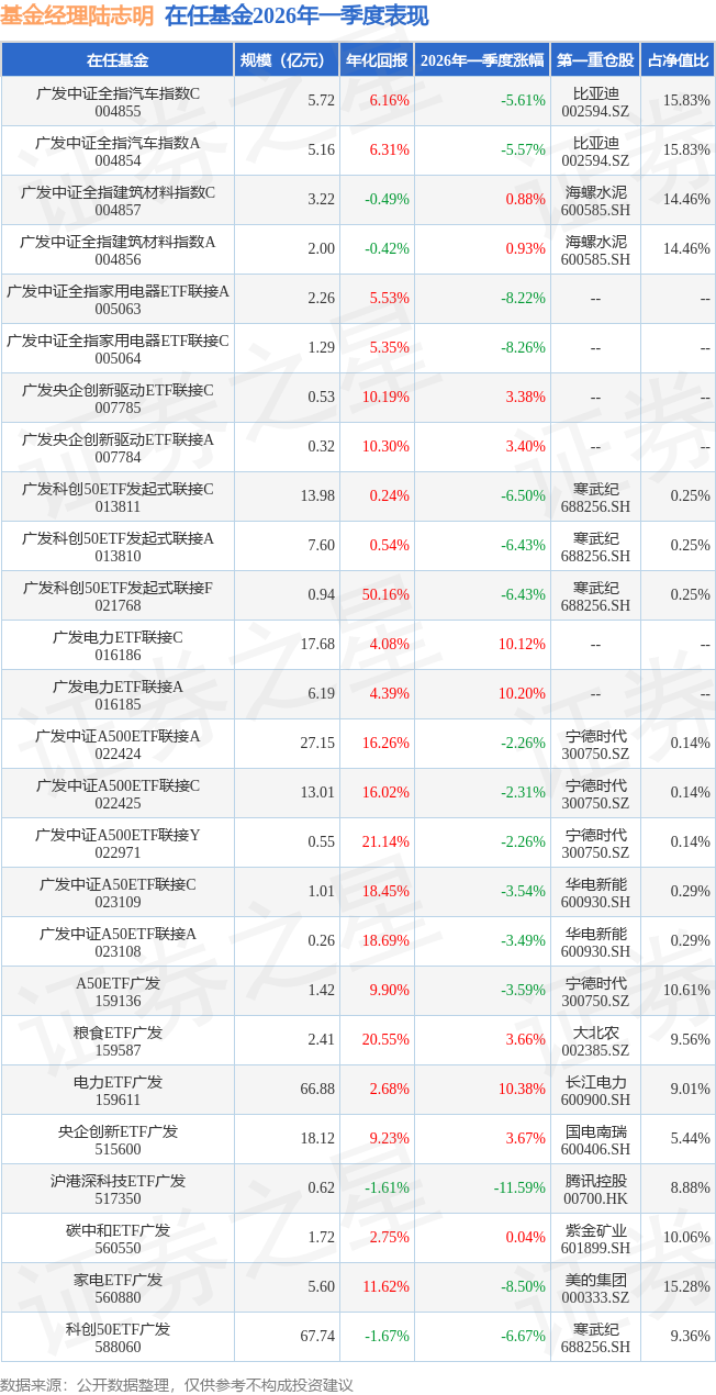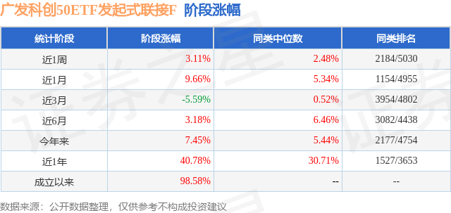 证券之星消息,日前广发科创50ETF发起式联接F基金公布一季报,2026年一季度最新规模0.94亿元,季度净值涨幅为-6.43%。