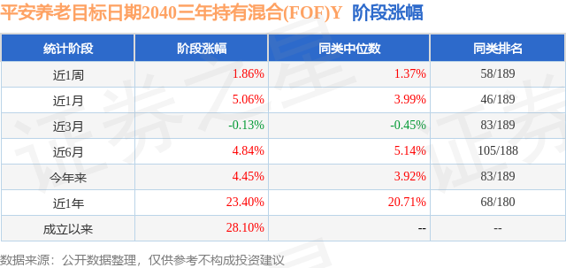 证券之星消息,日前平安养老目标日期2040三年持有混合(FOF)Y基金公布一季报,2026年一季度最新规模0.01亿元,季度净值涨幅为-1.45%。
