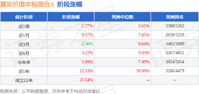 证券之星消息,日前嘉实价值丰裕混合A基金公布一季报,2026年一季度最新规模0.05亿元,季度净值涨幅为-3.21%。