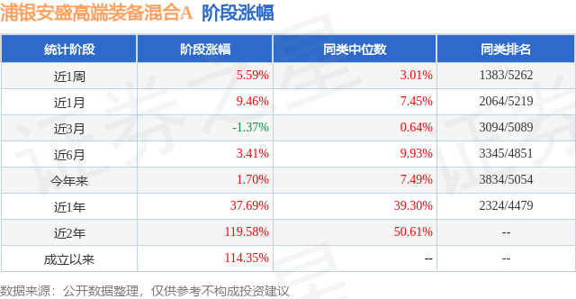 从业绩表现来看,浦银安盛高端装备混合A基金过去一年净值涨幅为37.69%,在同类基金中排名2324/4479,同类基金过去一年净值涨幅中位数为39.3%。而基金过去一年的最大回撤为-17.38%,成立以来的最大回撤为-23.42%。