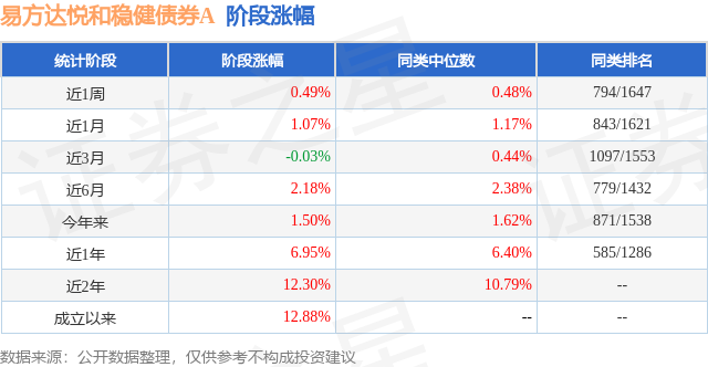从业绩表现来看,易方达悦和稳健债券A基金过去一年净值涨幅为6.95%,在同类基金中排名585/1286,同类基金过去一年净值涨幅中位数为6.4%。而基金过去一年的最大回撤为-2.8%,成立以来的最大回撤为-2.8%。