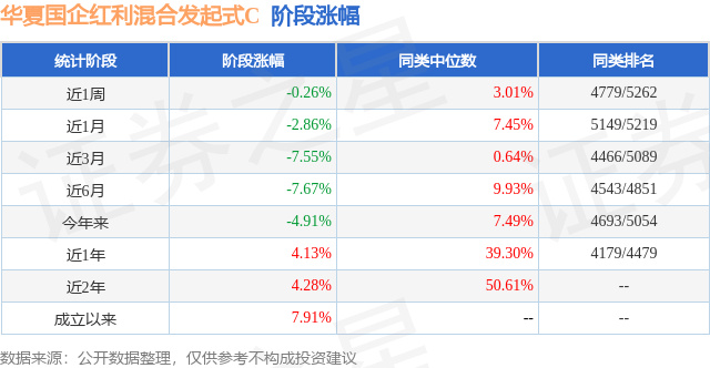 从业绩表现来看,华夏国企红利混合发起式C基金过去一年净值涨幅为4.13%,在同类基金中排名4179/4479,同类基金过去一年净值涨幅中位数为39.3%。而基金过去一年的最大回撤为-12.65%,成立以来的最大回撤为-15.11%。