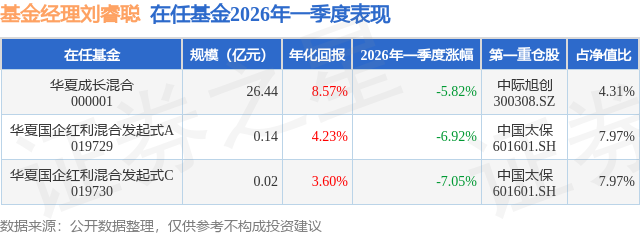 证券之星消息,日前华夏国企红利混合发起式C基金公布一季报,2026年一季度最新规模0.02亿元,季度净值涨幅为-7.05%。
