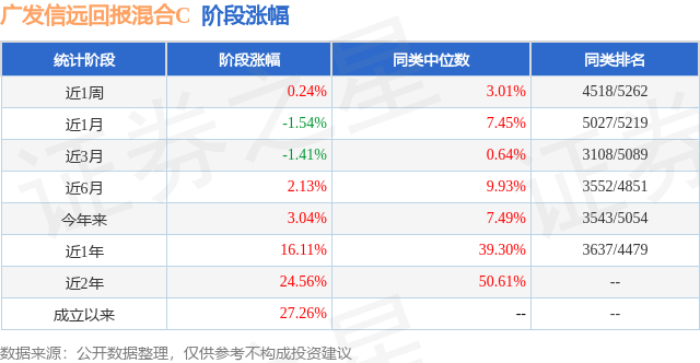 从业绩表现来看,广发信远回报混合C基金过去一年净值涨幅为16.11%,在同类基金中排名3637/4479,同类基金过去一年净值涨幅中位数为39.3%。而基金过去一年的最大回撤为-5.73%,成立以来的最大回撤为-11.91%。