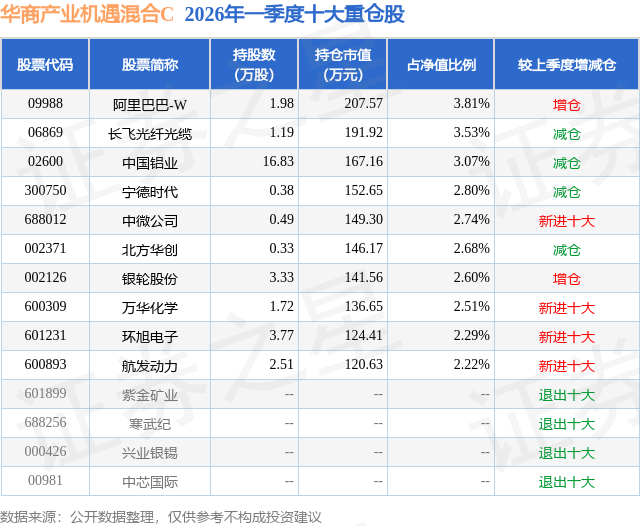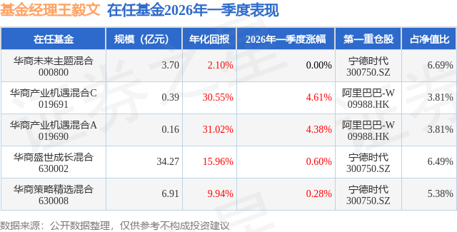 证券之星消息,日前华商产业机遇混合C基金公布一季报,2026年一季度最新规模0.39亿元,季度净值涨幅为4.61%。