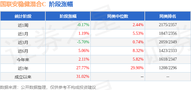 从业绩表现来看,国联安稳健混合C基金过去一年净值涨幅为27.77%,在同类基金中排名1208/2296,同类基金过去一年净值涨幅中位数为29.9%。而基金过去一年的最大回撤为-9.28%,成立以来的最大回撤为-15.68%。