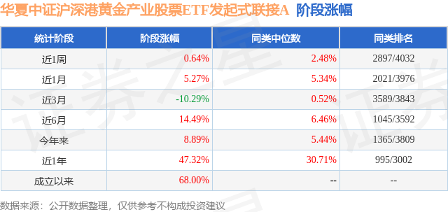 从业绩表现来看,华夏中证沪深港黄金产业股票ETF发起式联接A基金过去一年净值涨幅为47.32%,在同类基金中排名995/3002,同类基金过去一年净值涨幅中位数为30.71%。而基金过去一年的最大回撤为-32.92%,成立以来的最大回撤为-32.92%。