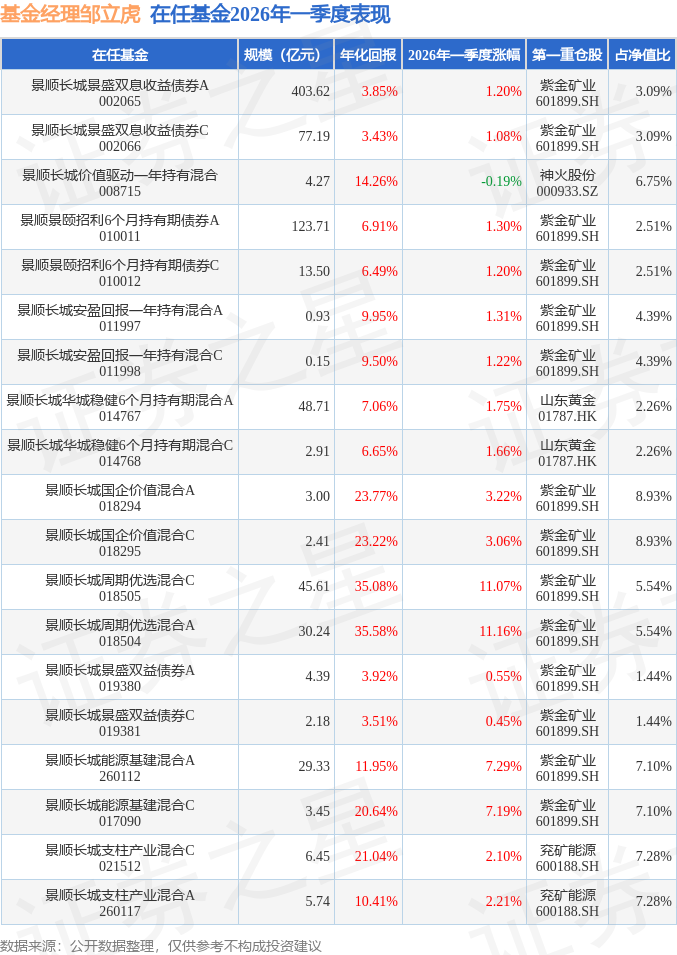 证券之星消息,日前景顺长城支柱产业混合C基金公布一季报,2026年一季度最新规模6.45亿元,季度净值涨幅为2.1%。