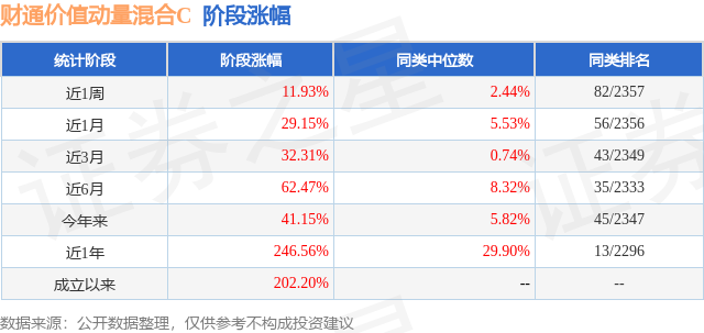 从业绩表现来看,财通价值动量混合C基金过去一年净值涨幅为246.56%,在同类基金中排名13/2296,同类基金过去一年净值涨幅中位数为29.9%。而基金过去一年的最大回撤为-18.74%,成立以来的最大回撤为-37.85%。