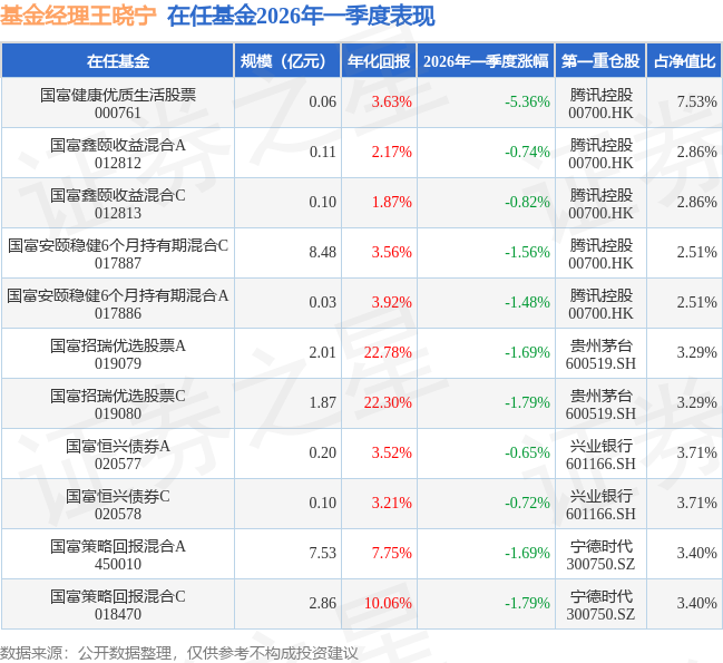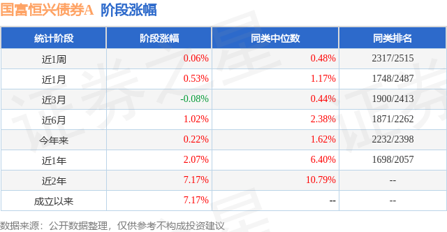证券之星消息,日前国富恒兴债券A基金公布一季报,2026年一季度最新规模0.2亿元,季度净值涨幅为-0.65%。