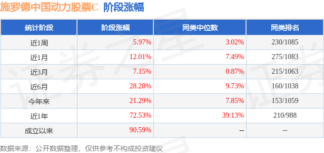 从业绩表现来看,施罗德中国动力股票C基金过去一年净值涨幅为72.53%,在同类基金中排名210/988,同类基金过去一年净值涨幅中位数为39.13%。而基金过去一年的最大回撤为-10.62%,成立以来的最大回撤为-15.24%。