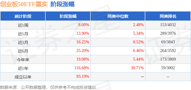 从业绩表现来看,创业板50ETF嘉实基金过去一年净值涨幅为116.68%,在同类基金中排名59/3002,同类基金过去一年净值涨幅中位数为30.71%。而基金过去一年的最大回撤为-13.08%,成立以来的最大回撤为-22.29%。