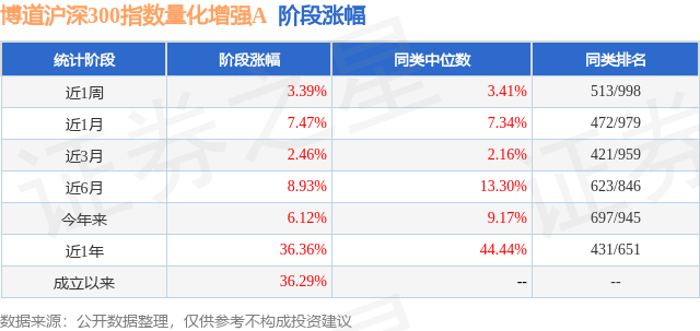 从业绩表现来看,博道沪深300指数量化增强A基金过去一年净值涨幅为36.36%,在同类基金中排名431/651,同类基金过去一年净值涨幅中位数为44.44%。而基金过去一年的最大回撤为-8.49%,成立以来的最大回撤为-8.49%。