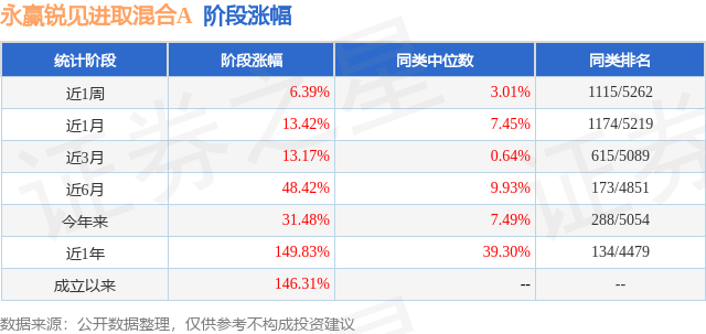 从业绩表现来看,永赢锐见进取混合A基金过去一年净值涨幅为149.83%,在同类基金中排名134/4479,同类基金过去一年净值涨幅中位数为39.3%。而基金过去一年的最大回撤为-14.59%,成立以来的最大回撤为-14.59%。