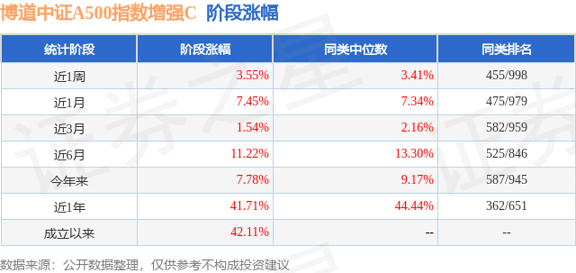 从业绩表现来看,博道中证A500指数增强C基金过去一年净值涨幅为41.71%,在同类基金中排名362/651,同类基金过去一年净值涨幅中位数为44.44%。而基金过去一年的最大回撤为-9.47%,成立以来的最大回撤为-10.75%。
