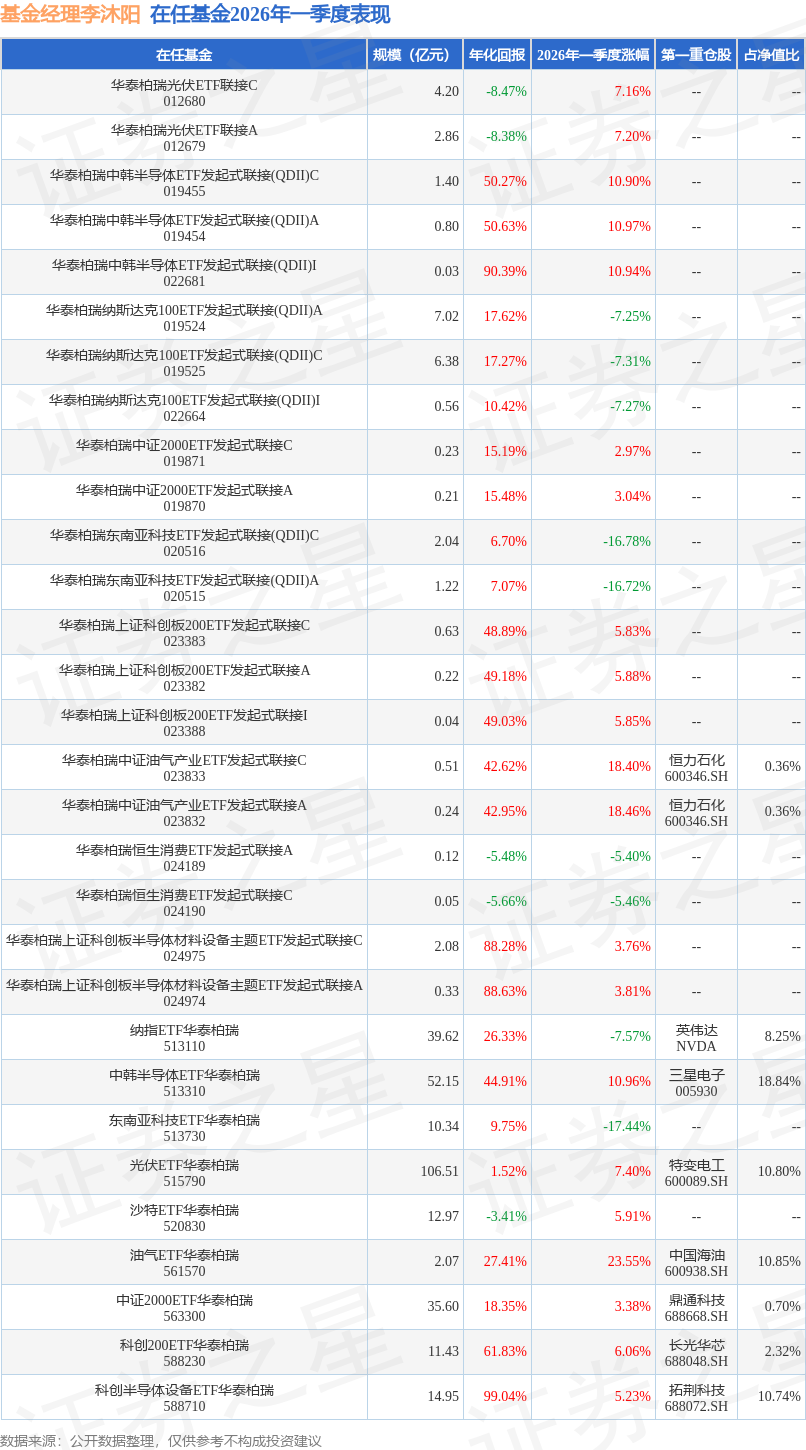 证券之星消息,日前华泰柏瑞中证油气产业ETF发起式联接C基金公布一季报,2026年一季度最新规模0.51亿元,季度净值涨幅为18.4%。