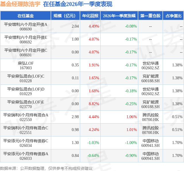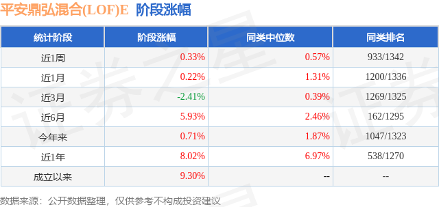 证券之星消息,日前平安鼎弘混合(LOF)E基金公布一季报,2026年一季度最新规模0.0亿元,季度净值涨幅为-0.25%。