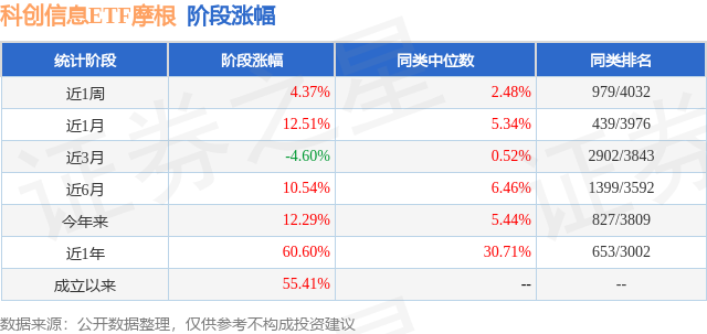 从业绩表现来看,科创信息ETF摩根基金过去一年净值涨幅为60.6%,在同类基金中排名653/3002,同类基金过去一年净值涨幅中位数为30.71%。而基金过去一年的最大回撤为-20.72%,成立以来的最大回撤为-20.72%。