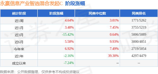 从业绩表现来看,永赢信息产业智选混合发起C基金过去一年净值涨幅为-2.16%,在同类基金中排名4297/4479,同类基金过去一年净值涨幅中位数为39.3%。而基金过去一年的最大回撤为-28.06%,成立以来的最大回撤为-28.06%。