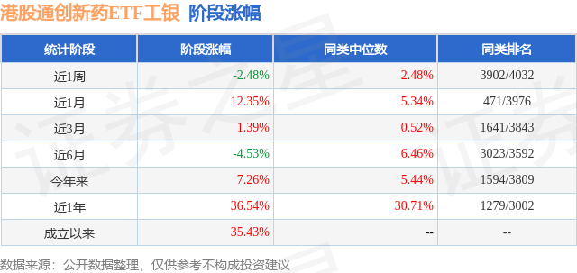 从业绩表现来看,港股通创新药ETF工银基金过去一年净值涨幅为36.54%,在同类基金中排名1279/3002,同类基金过去一年净值涨幅中位数为30.71%。而基金过去一年的最大回撤为-31.61%,成立以来的最大回撤为-31.61%。