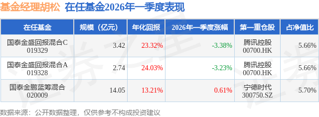 证券之星消息,日前国泰金盛回报混合C基金公布一季报,2026年一季度最新规模3.42亿元,季度净值涨幅为-3.38%。