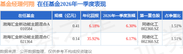 证券之星消息,日前渤海汇金新动能主题混合C基金公布一季报,2026年一季度最新规模0.14亿元,季度净值涨幅为6.17%。