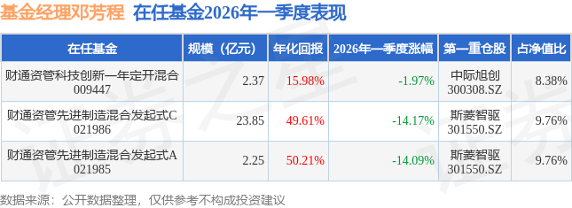 财通资管先进制造混合发起式C现任基金经理为邓芳程,本季度增聘基金经理邓芳程。其中在任基金经理邓芳程已从业0年又185天,2026年3月27日正式接手管理财通资管先进制造混合发起式C,任职期间累计回报为9.98%。目前还管理着3只基金产品(包括A类和C类)。