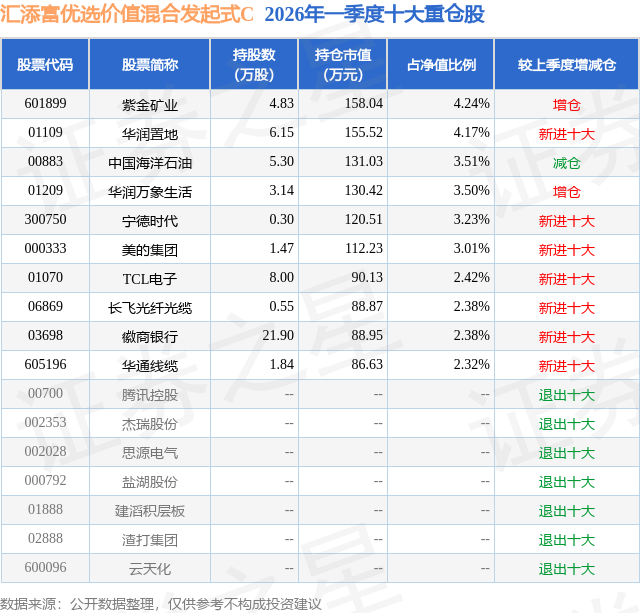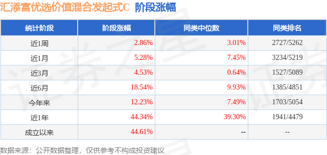 证券之星消息,日前汇添富优选价值混合发起式C基金公布一季报,2026年一季度最新规模0.18亿元,季度净值涨幅为4.48%。