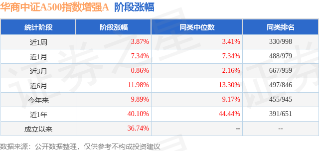 从业绩表现来看,华商中证A500指数增强A基金过去一年净值涨幅为40.1%,在同类基金中排名391/651,同类基金过去一年净值涨幅中位数为44.44%。而基金过去一年的最大回撤为-10.35%,成立以来的最大回撤为-11.11%。