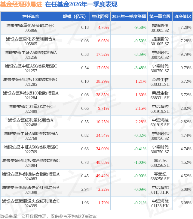 证券之星消息,日前浦银安盛红利量化混合C基金公布一季报,2026年一季度最新规模0.66亿元,季度净值涨幅为2.15%。