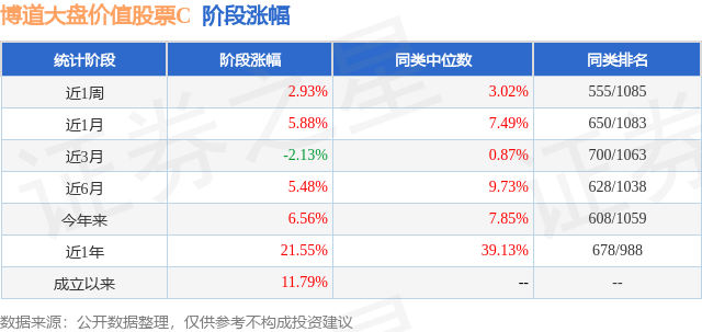 从业绩表现来看,博道大盘价值股票C基金过去一年净值涨幅为21.55%,在同类基金中排名678/988,同类基金过去一年净值涨幅中位数为39.13%。而基金过去一年的最大回撤为-11.58%,成立以来的最大回撤为-12.22%。