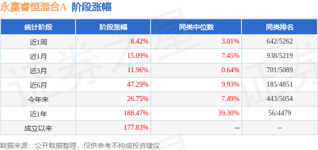 证券之星消息,日前永赢睿恒混合A基金公布一季报,2026年一季度最新规模7.61亿元,季度净值涨幅为4.46%。